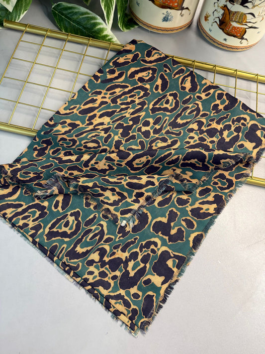 Ala Leopar Desen Naturel Pamuk Şal-Zümrüt