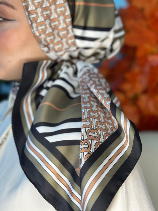 Burberry Kare Desen Vual İpek Eşarp-8682626-Koyu yeşil