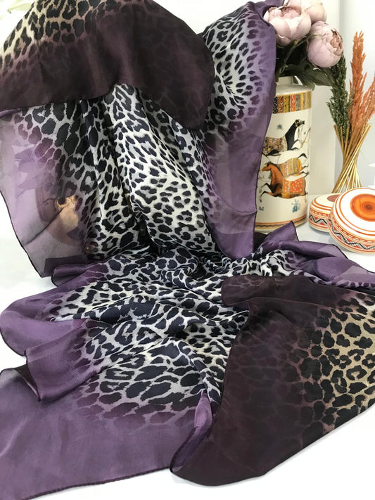İthal Jaguar Desenli Çifttaraflı Vual İpek Şal-34014 Mor