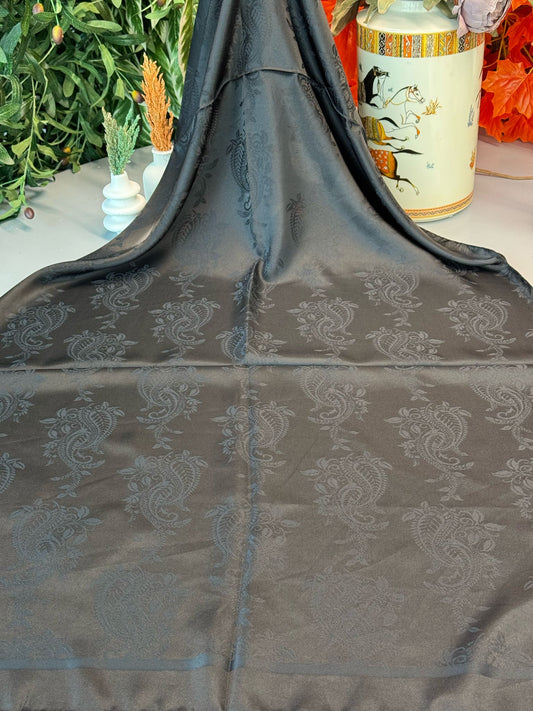 Etnik İthal Pamuk Jakar İpek Şal - SİYAH