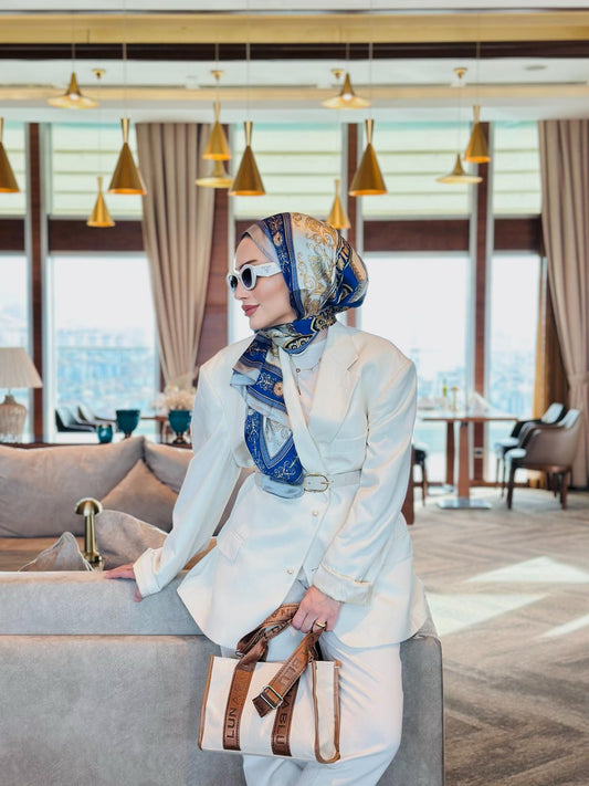 Lv Desenli İpek Kaşmir Çift Taraflı Şal - Bej