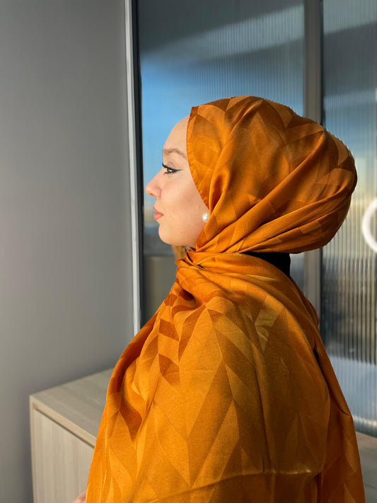 Eğimli Baklava Desen İpeksi Jakar Şal - 741256 - Portakal