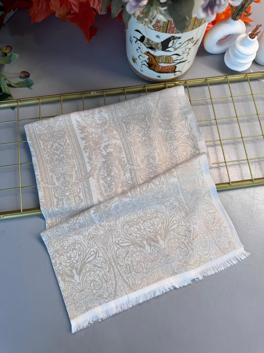 Liva Kendinden Dokulu Çift Taraflı İpek Şal - 9897 - Taş