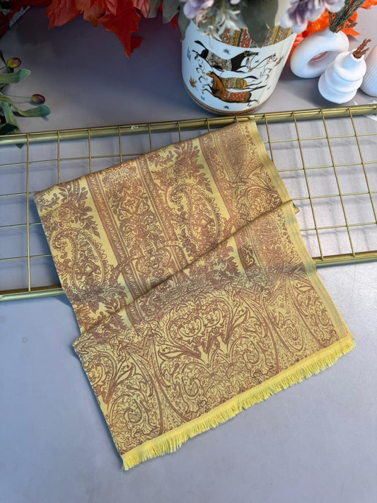 Liva Kendinden Dokulu Çift Taraflı İpek Şal - 9897 - Limon