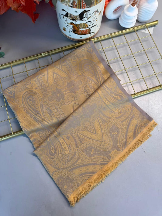 Milano Kendinden Dokulu Çift Taraflı İpek Şal - 8963 - Latte