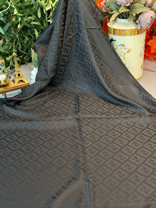 Fendi İthal Pamuk İpek Jakar Şal - Siyah