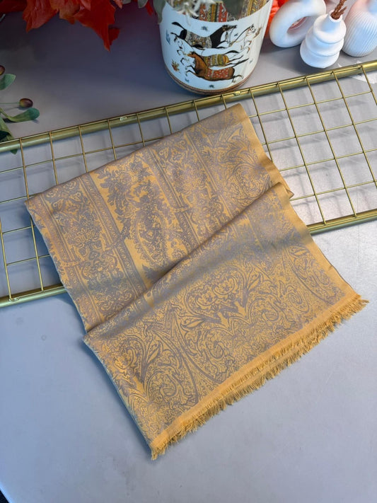 Liva Kendinden Dokulu Çift Taraflı İpek Şal - 9897 - Latte
