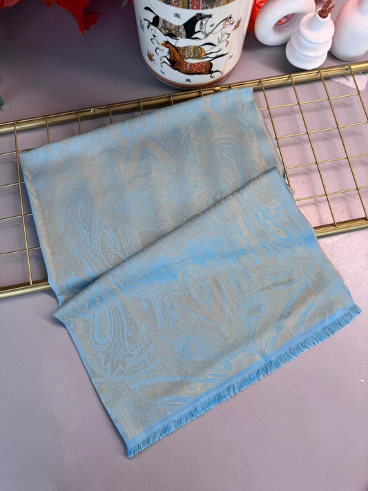 Milano Kendinden Dokulu Çift Taraflı İpek Şal - 8963 - Mavi