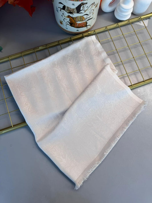 Liva Kendinden Dokulu Çift Taraflı İpek Şal - 9897 -Krem