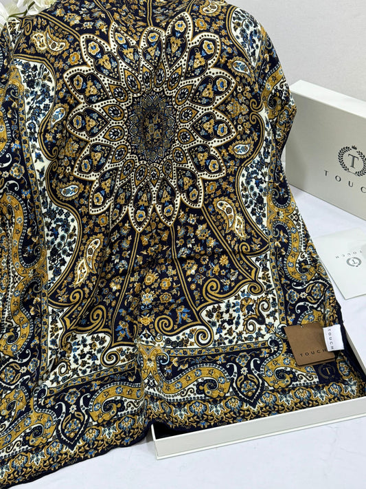 Touch İthal Etnik Desen Pamuk İpek Şal- 99990 - Siyah Turkuaz