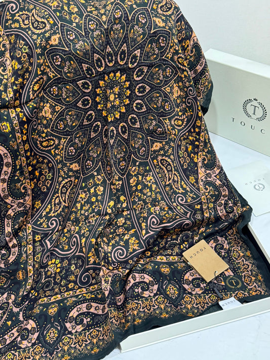 Touch İthal Etnik Desen Yün İpek Şal- 34550 - Siyah Turuncu