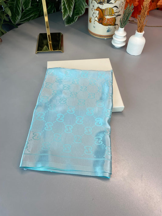LV Desen Çift taraflı İpeksi Jakar Şal- Su Yeşili