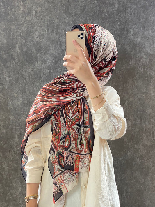 New Desen Pamuk Jakar İpek Şal - 19450 - Kırmızı