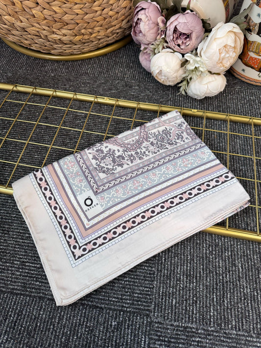 Touch İthal Etnik Desen Pamuk İpek Şal-35330-Lacivert -Camel