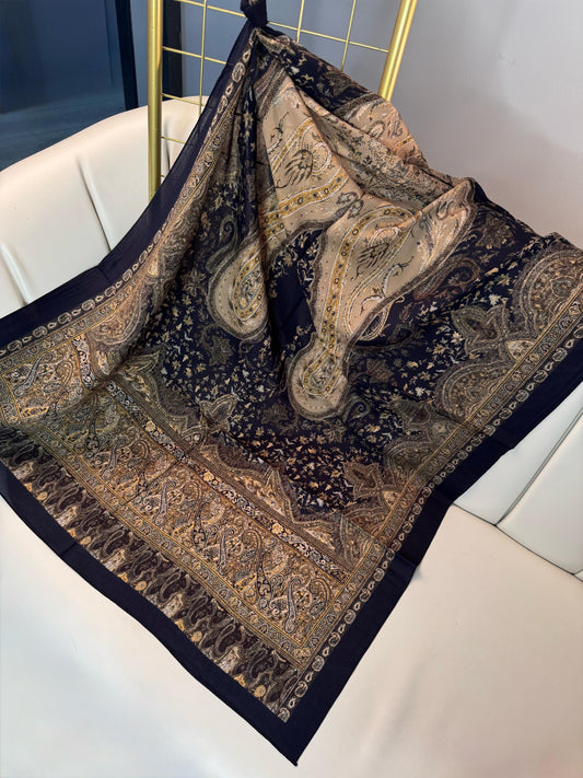 Diamond Desen Vual İpek Şal-030405-Lacivert