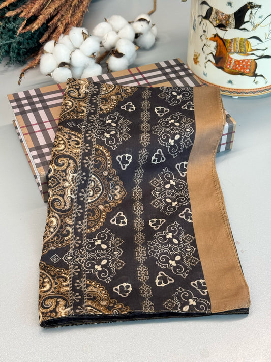Kupa Desenli Pamuk İpek Şal - 797730 - Siyah-Vizon