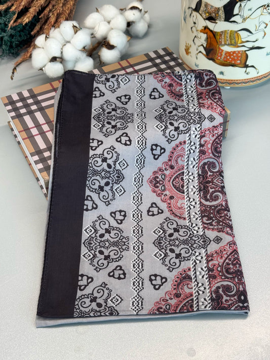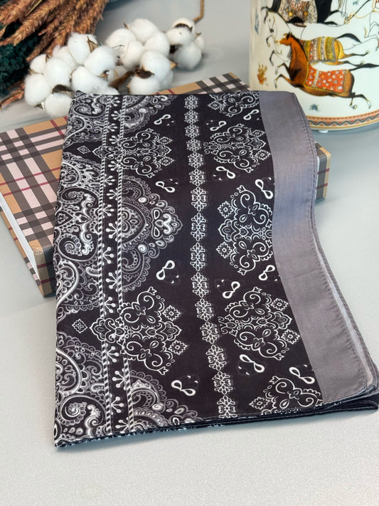 Kupa Desenli Pamuk İpek Şal - 797730 - Siyah-Gri