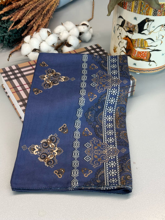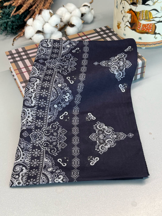 Kupa Desenli Pamuk İpek Şal - 797730 - Lacivert