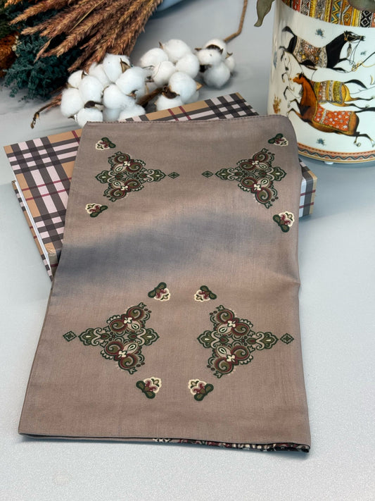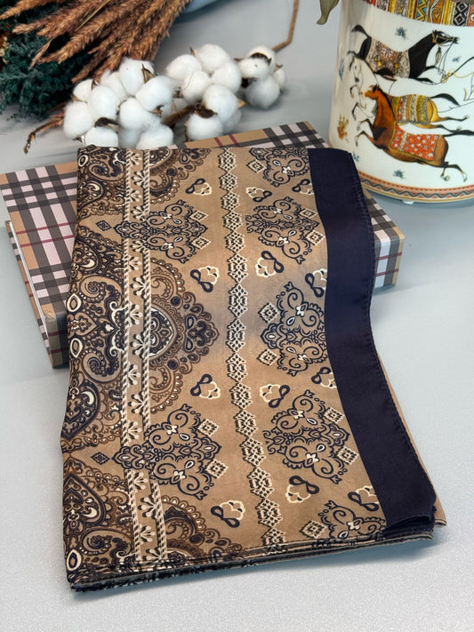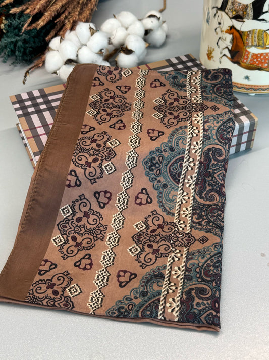 Kupa Desenli Pamuk İpek Şal - 797730 - Kahve
