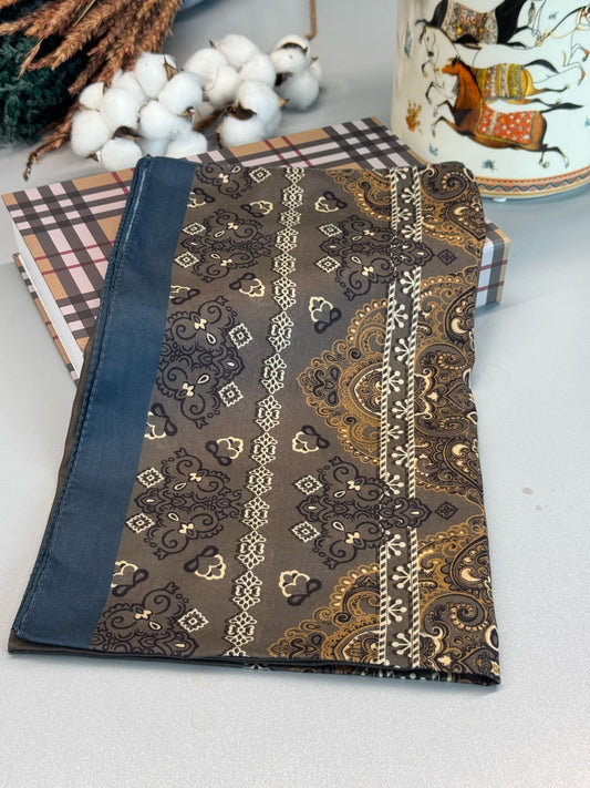 Kupa Desenli Pamuk İpek Şal - 797730 - Vizon-Lacivert