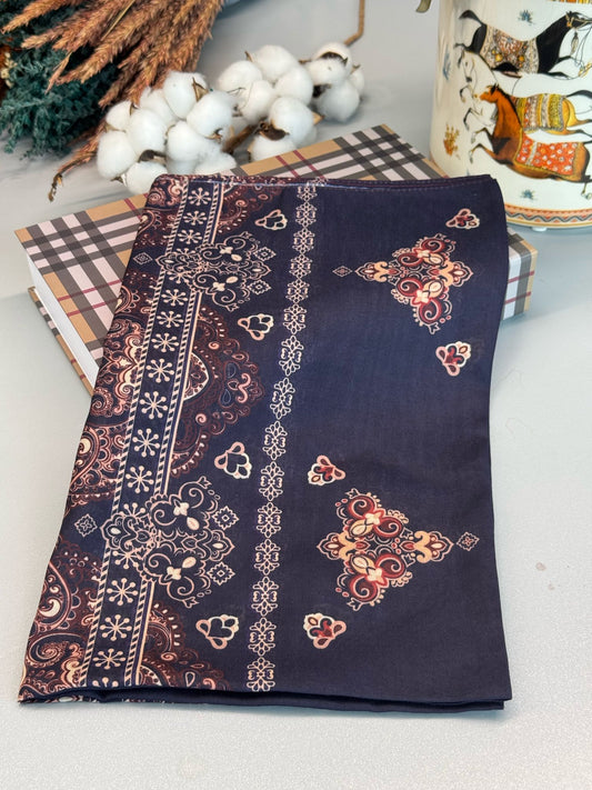 Kupa Desenli Pamuk İpek Şal - 797730 - Lacivert-Camel