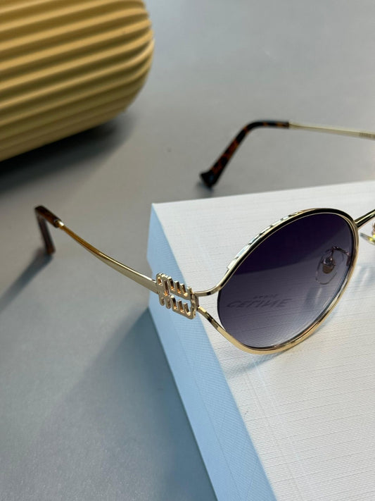 Celine Original Premium Full Set Güneş Gözlüğü - Gold Mavi