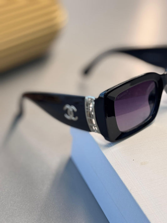 Chanel Dikdörtgen Güneş Gözlüğü - Siyah Gümüş