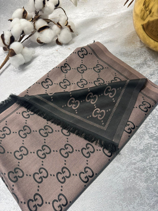 Gucci Desen Pamuk İpeksi Jakar Şal - Çakıl Taşı