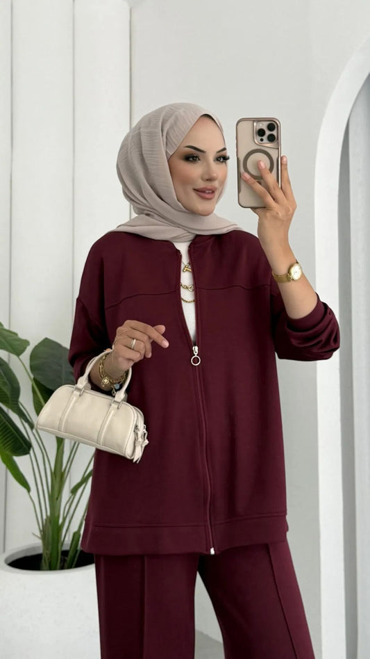 Oysho Premium Fermuarlı Basic İkili Takım TK2962 – Bordo
