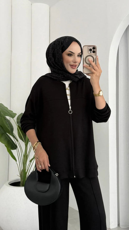 Oysho Premium Fermuarlı Basic İkili Takım TK2962 -Siyah (SERİLİ SATIŞTIR)