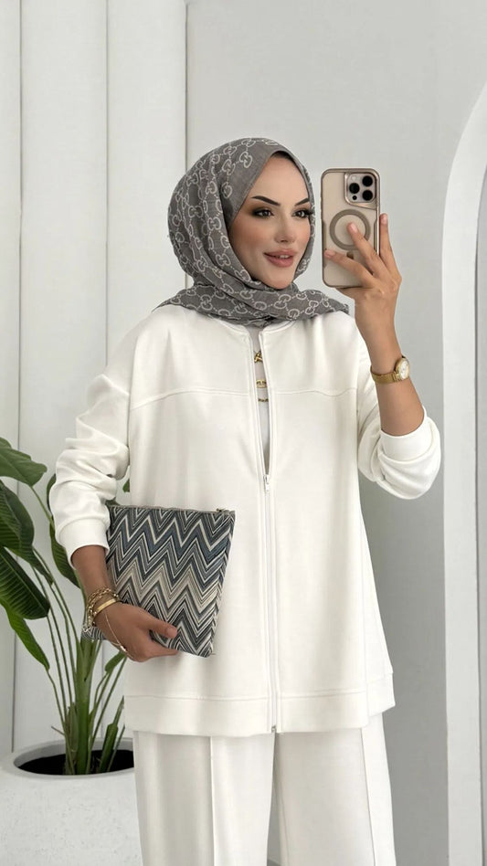 Oysho Premium Fermuarlı Basic İkili Takım TK2962 – Beyaz İnci (SERİLİ SATIŞTIR)