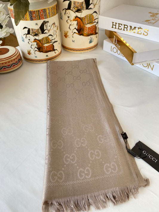 İthal Gucci Pamuk Yün İpek Şal 544330 - Vizon