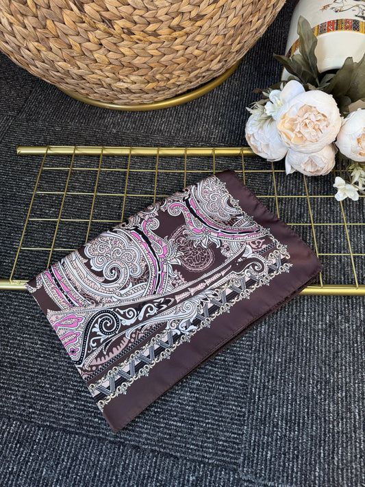 Zamansız Motif Vual İpek Şal-487934-Kahve