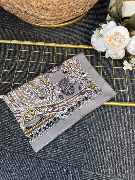 Oxxo Desen Vual İpek Eşarp -6203662-Gri