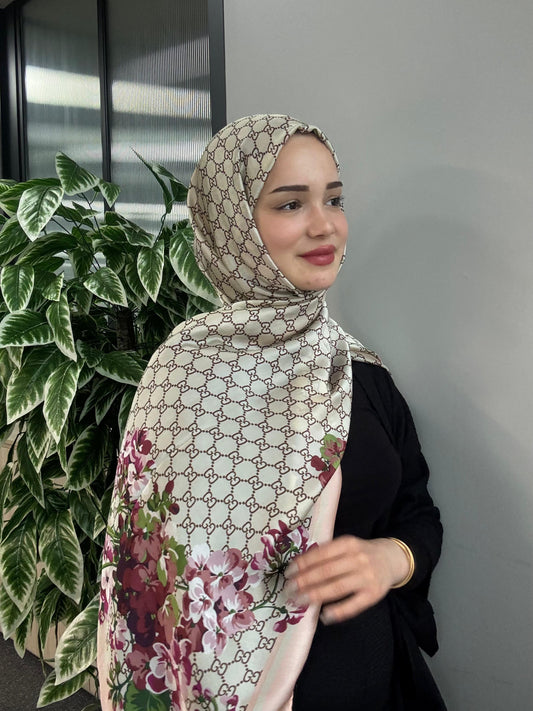 Gucci Monogram İthal Vual İpek Şal 014461 –Somon
