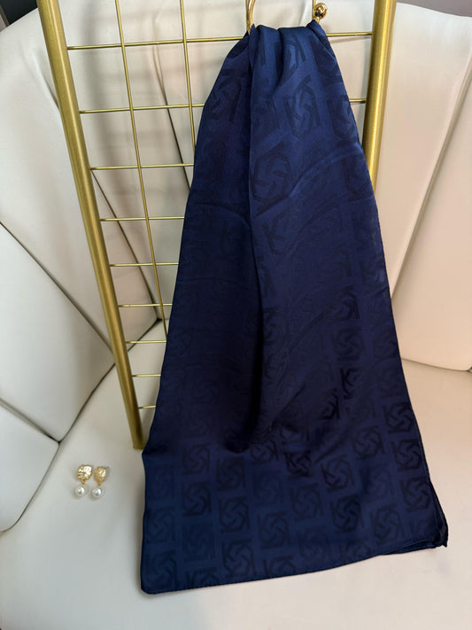 Dalga Desen Pamuk İpeksi Jakar Şal-53354-Lacivert