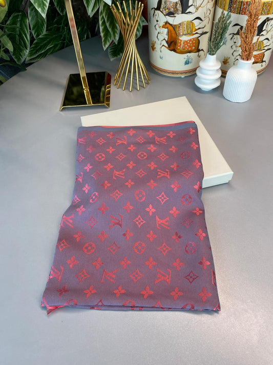 LV Desen Çift taraflı İpeksi Jakar Şal-Pembe-Gri