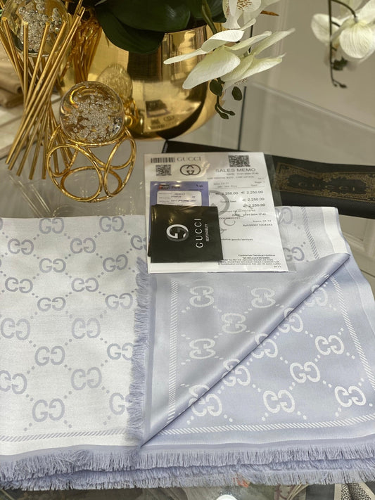 G Desenli İpek Kaşmir Çift Taraflı Şal - Gümüş Gri