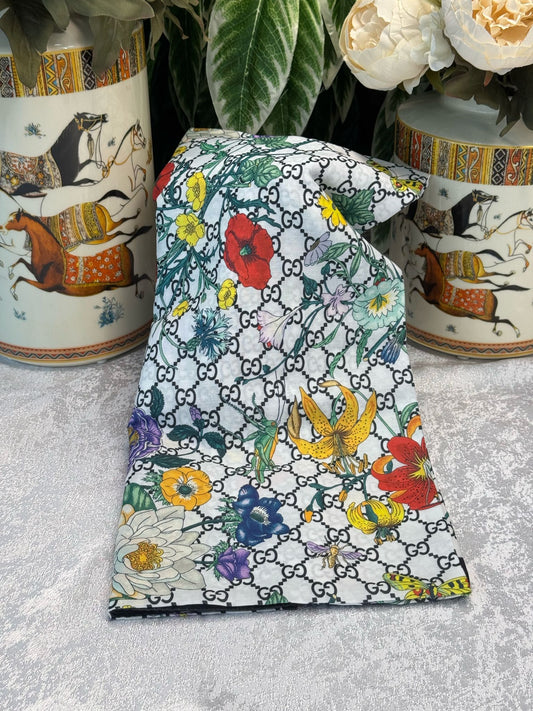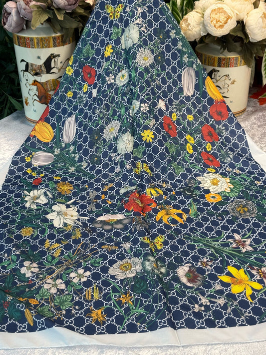 Gucci Çiçek Desen Pamuk Soft Şal 65355 - Lacivert/Beyaz