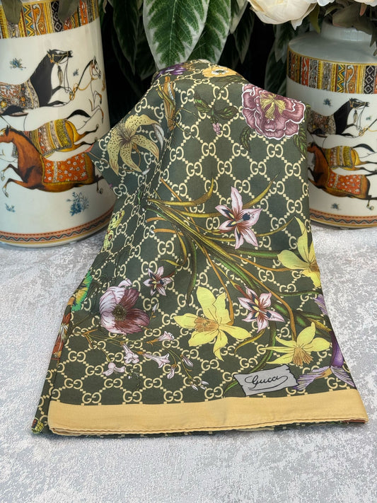 Gucci Çiçek Desen Pamuk Soft Şal 65355 - Haki