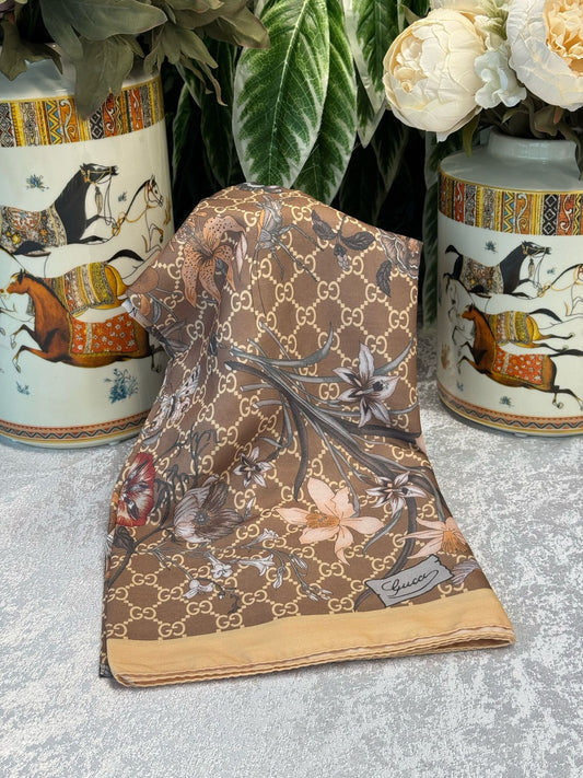 Gucci Çiçek Desen Pamuk Soft Şal 65355 - Cappuccino