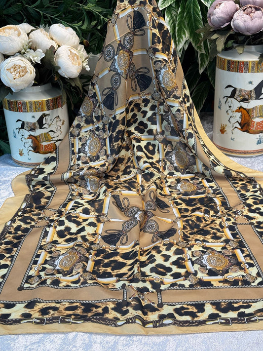 Hermes Leopar Pamuk Soft Şal 65329 - Gold