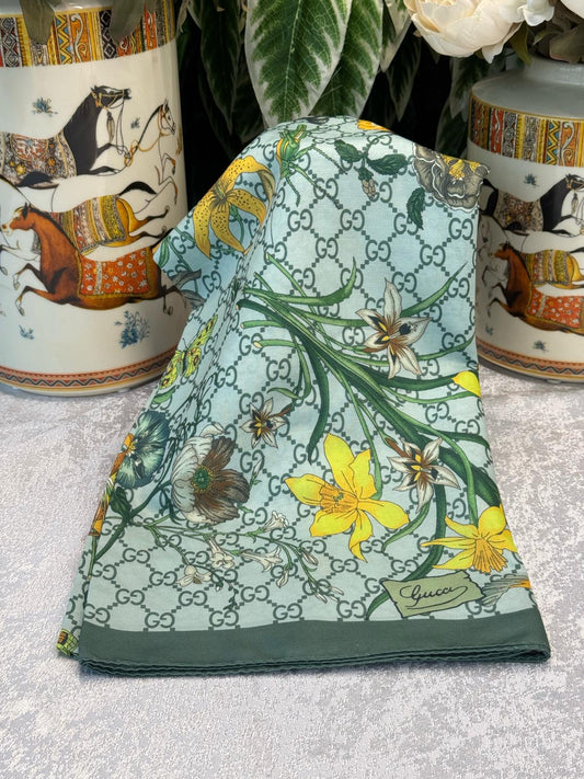 Gucci Çiçek Desen Pamuk Soft Şal 65355 - Mint