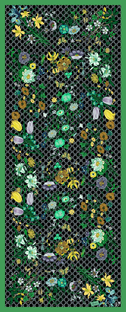 Gucci Çiçek Desen Pamuk Soft Şal 65355 - Siyah/Yeşil