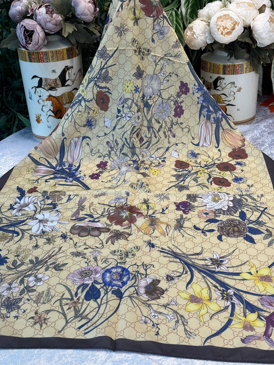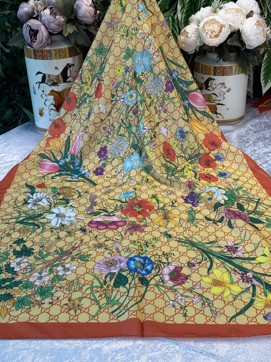 Gucci Çiçek Desen Pamuk Soft Şal 65355 - Sarı