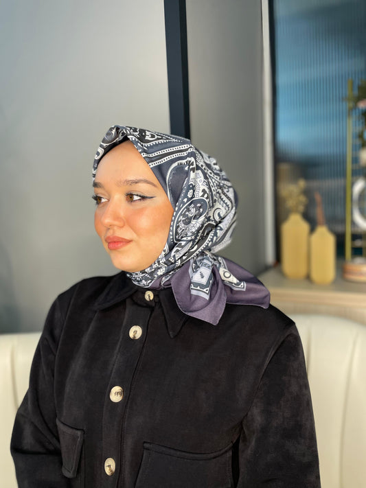 Retro Desen Pamuk Soft Eşarp 27092 -Kurşuni