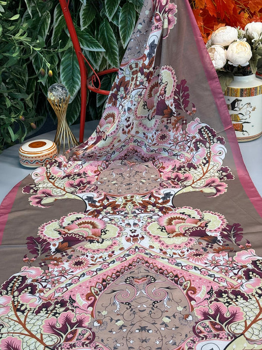 Etro Çiçek Desen Pamuk soft Şal - 433240 - Pudra