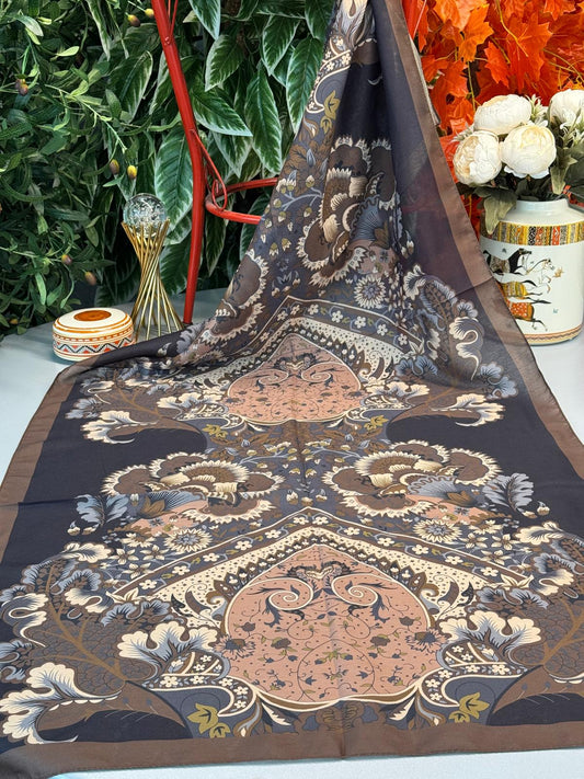 Etro Çiçek Desen Pamuk soft Şal - 433240 - Kahve-Siyah