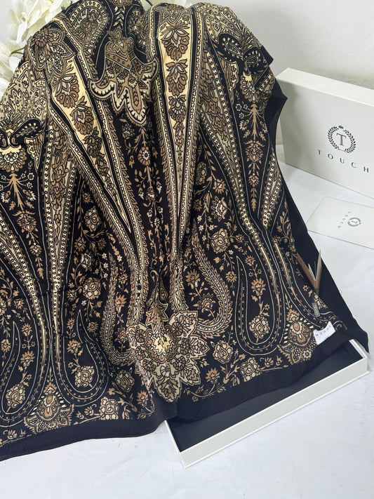Touch İthal Etnik Desen Pamuk İpek Şal 63457 - Siyah Latte
