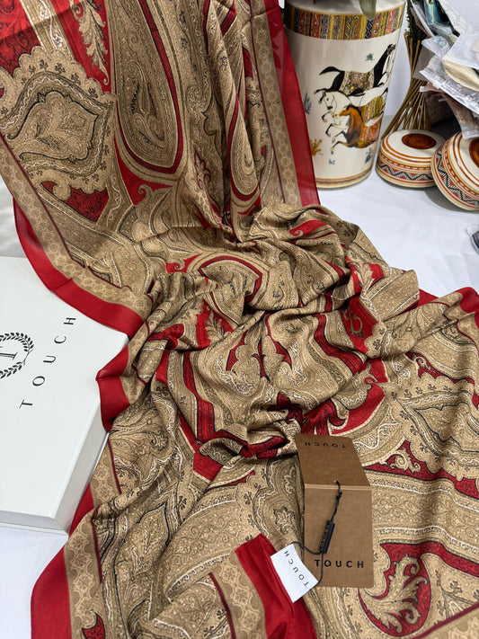Touch İthal Etnik Desen Pamuk İpek Şal 63456 - Kiraz